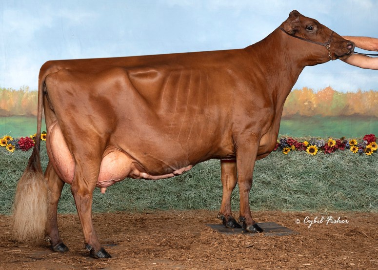 TK-Plain-View B Sage, EX94, Reserve Grand Champion Harrisburg Jr. Show 2024,Nominated Jr All-American Aged Cow 2024 owned by Marshall and Kayla Overholt Family